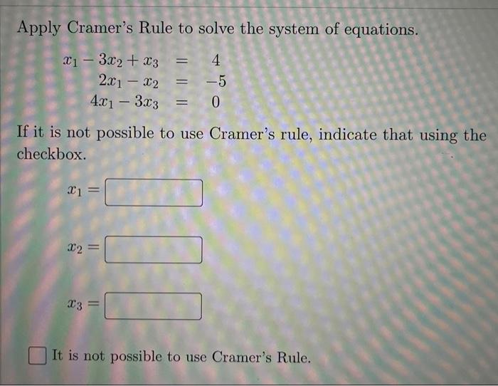 How to use Cramer's Rule to Solve Systems of Linear Equations YouTube Cramer's Rule Application Learn cramer’s rule for matrices of order. cramer’s rule is used to determine the solution of a system of linear equations in n variables. use cramer’s rule to efficiently determine solutions to linear systems. When the determinant of the coefficient matrix is \(0\),. using the nutrient values given for ippizuti fish, misty mushrooms, and sun berries, use. Cramer's Rule Application.